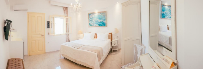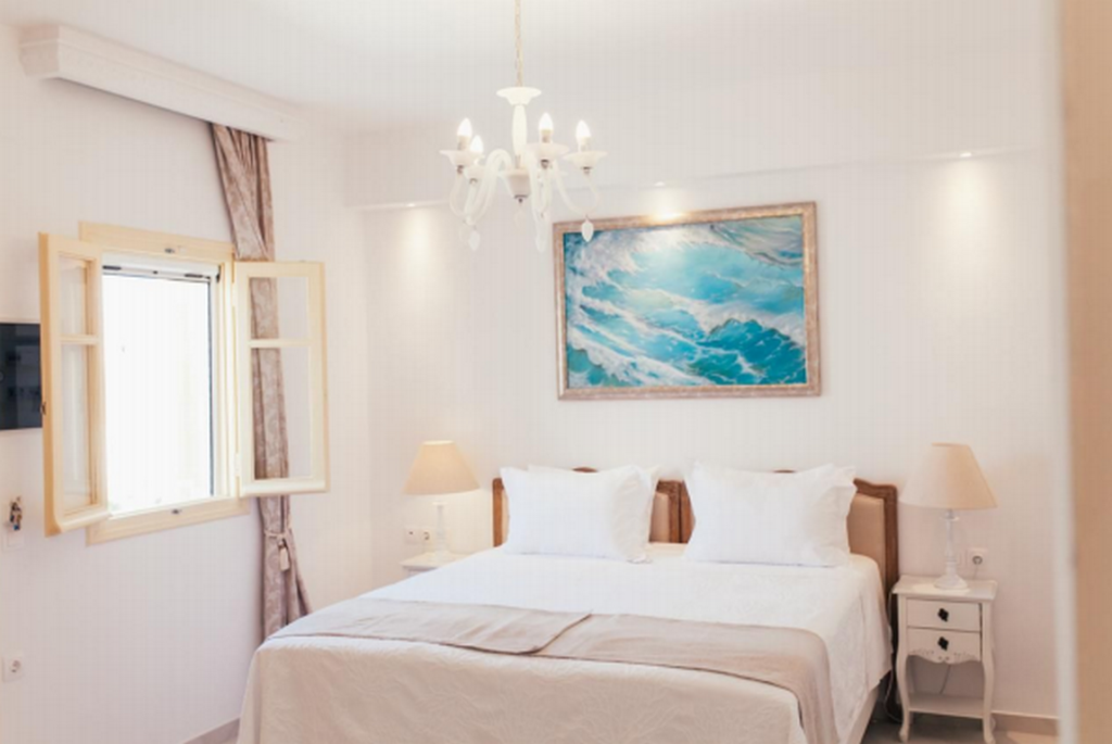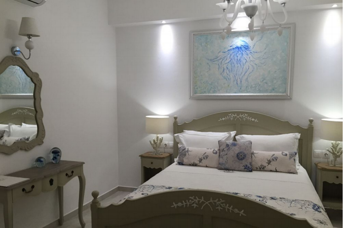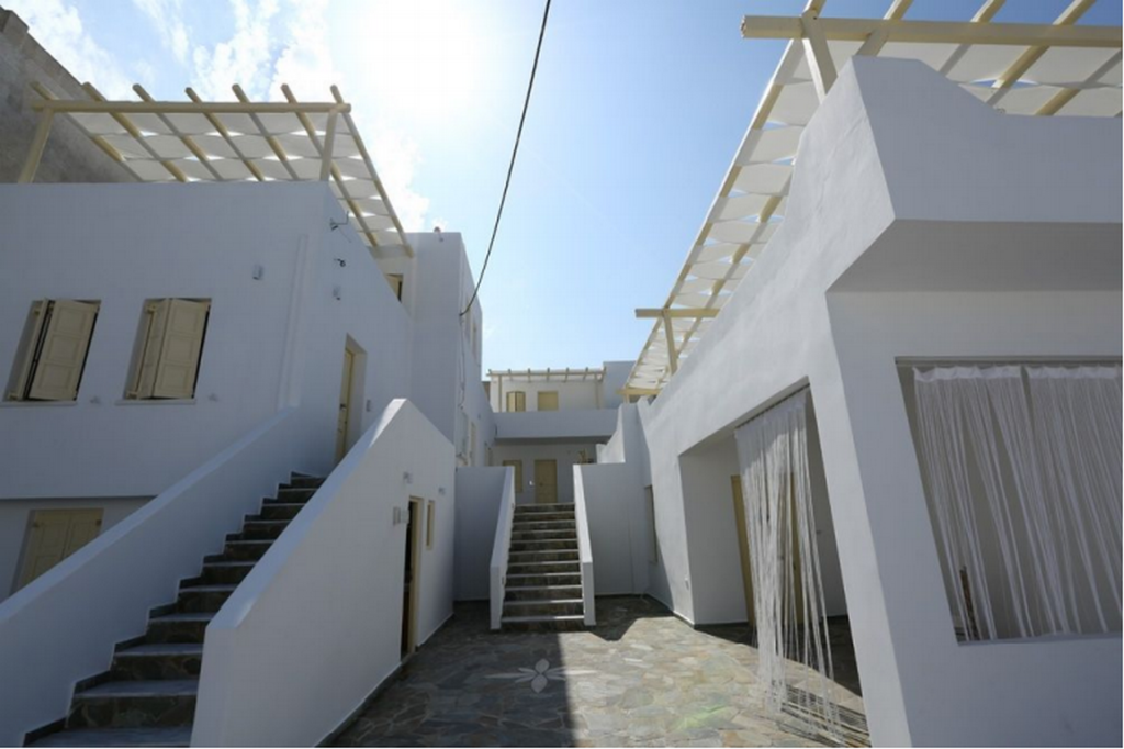 Milos, Adamas, luxury hotel for sale, 535 sq. m., in excellent condition, year of built 1992 with complete renovation in 2015, three levels, within a plot of 452 sq. m., capacity of 10 rooms (double, triple, suites), café – bar of 26 sq. m., independent reception area of 10 sq. m., veranda of 120 sq. m., traditional wooden frames, large terraces with pergolas, with A/C units, refrigerators mini-bar, TV in all rooms, including a furnished and fully equipped apartment of 110 sq. m. consisted of a large living room, kitchen, 3 bedrooms and bathroom, clothing storage and laundry area of 85 sq. m., staff room, staff toilets, additional storage spaces of 6 sq. m., tiles on the floors of the rooms, Karystos tiles in the common areas of the ground floor, 4 solar water heaters, autonomous water tank, 1 open parking space, view of the city and the main port, direct access to the local market and beaches, 200 meters from the port, 4 km from the airport