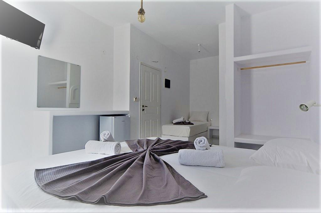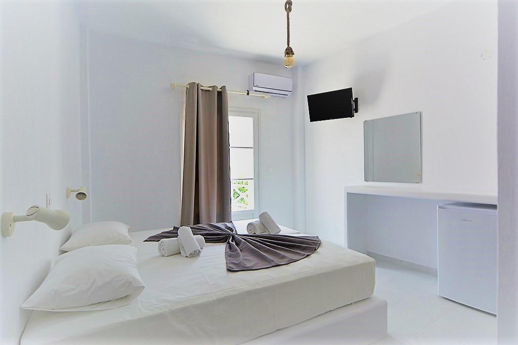 Paros, Naoussa, hotel for sale, 600 sq. m., frontage, corner, three-sided, within a plot of 670 sq. m., leased until the end of the tourist season of 2026, capacity of 18 rooms and apartments, on 2 levels, year of built 1998 with complete renovation in 2016, reception area, traditional wooden frames, separate verandas in every room that include a/c units, mini bars, kitchenettes, TV, solar water heaters, it has a staff room, a 50 sq. m. basement utility area with an independent entrance with a room, a toilet, a storage area for clothes and linen cleaning, located in the local market, 100 meters from the center of Naoussa (the picturesque alleys of Naoussa begin from the hotel), 150 meters from the beach, 16 km from the airport, 12 km from the port of Parikia