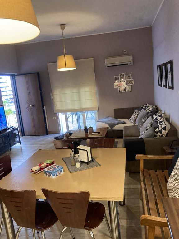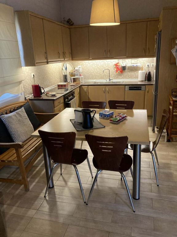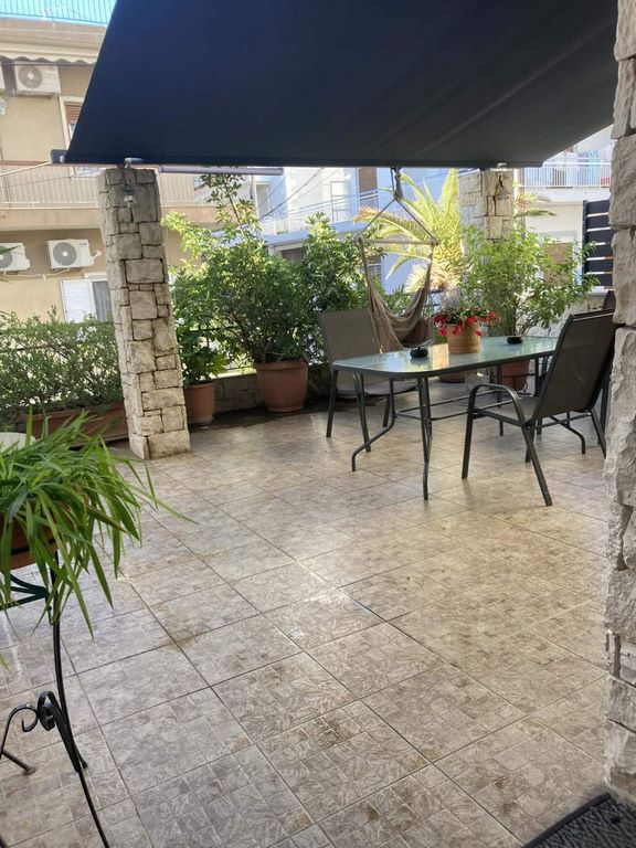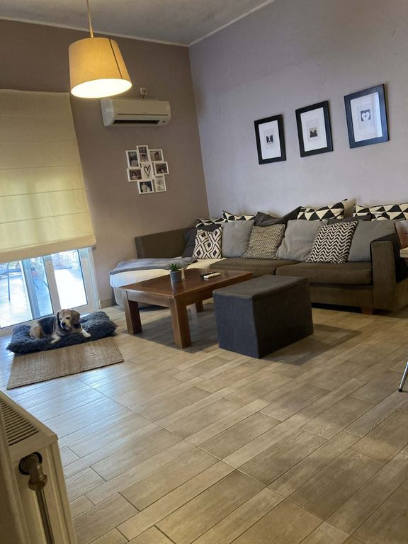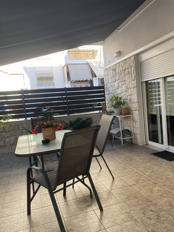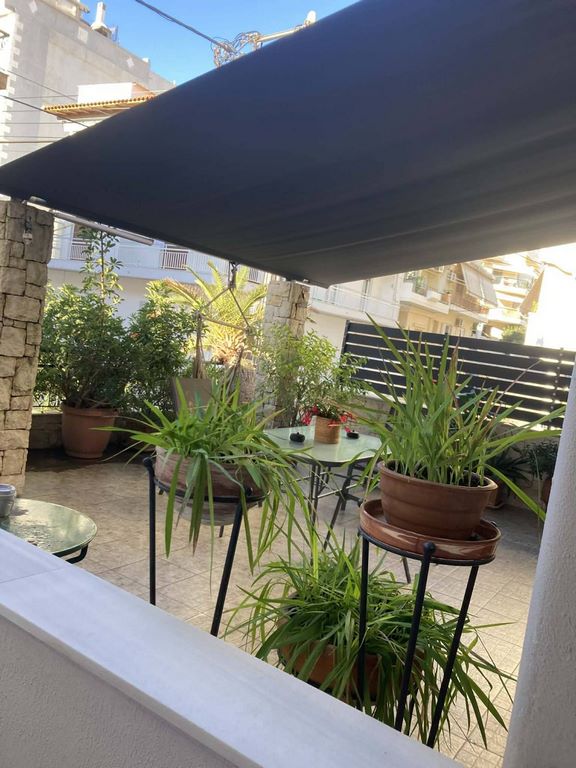 Ilioupoli, Agia Marina, floor apartment for sale, without brokerage fees from the buyer, 84 sq. m., 1st floor in a duplex, facade, corner, very bright, excellent layout, year of built 1965, living room, open plan kitchen with all built-in electrical appliances included, 3 bedrooms, bathroom, autonomous heating / petroleum with the possibility of installing natural gas, security door, aluminum double glazed windows, without elevator, solar water heater, 3 A/C units, tiled floors, big balcony of 30 sq. m. with stone cladding on the façade of the apartment, single phase current (with complete installation of three phase current), awnings, without common expenses, in the local market, direct access to schools of all grades, central streets and public transport, 300 meters from the central square of Agia Marina, 3 km from Ilioupoli metro station, 2.5 km from Agios Dimitrios metro station (Athens Metro Mall), 5 km from the Acropolis and the historical center, 15 km from the port of Piraeus, 33 km from the airport